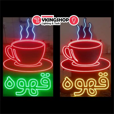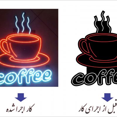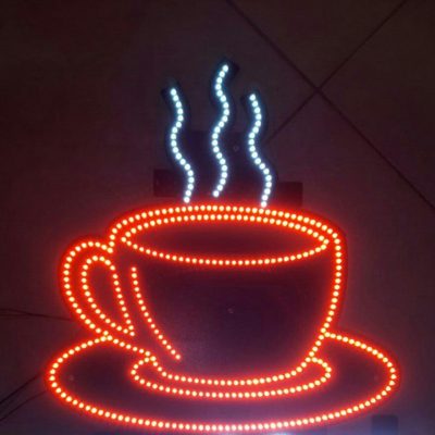 تابلو ال ای دی طرح فنجان قهوه سفارشی بسته به ابعاد شیشه یا فضای بیرون مغازه ساخت 3 الی 4