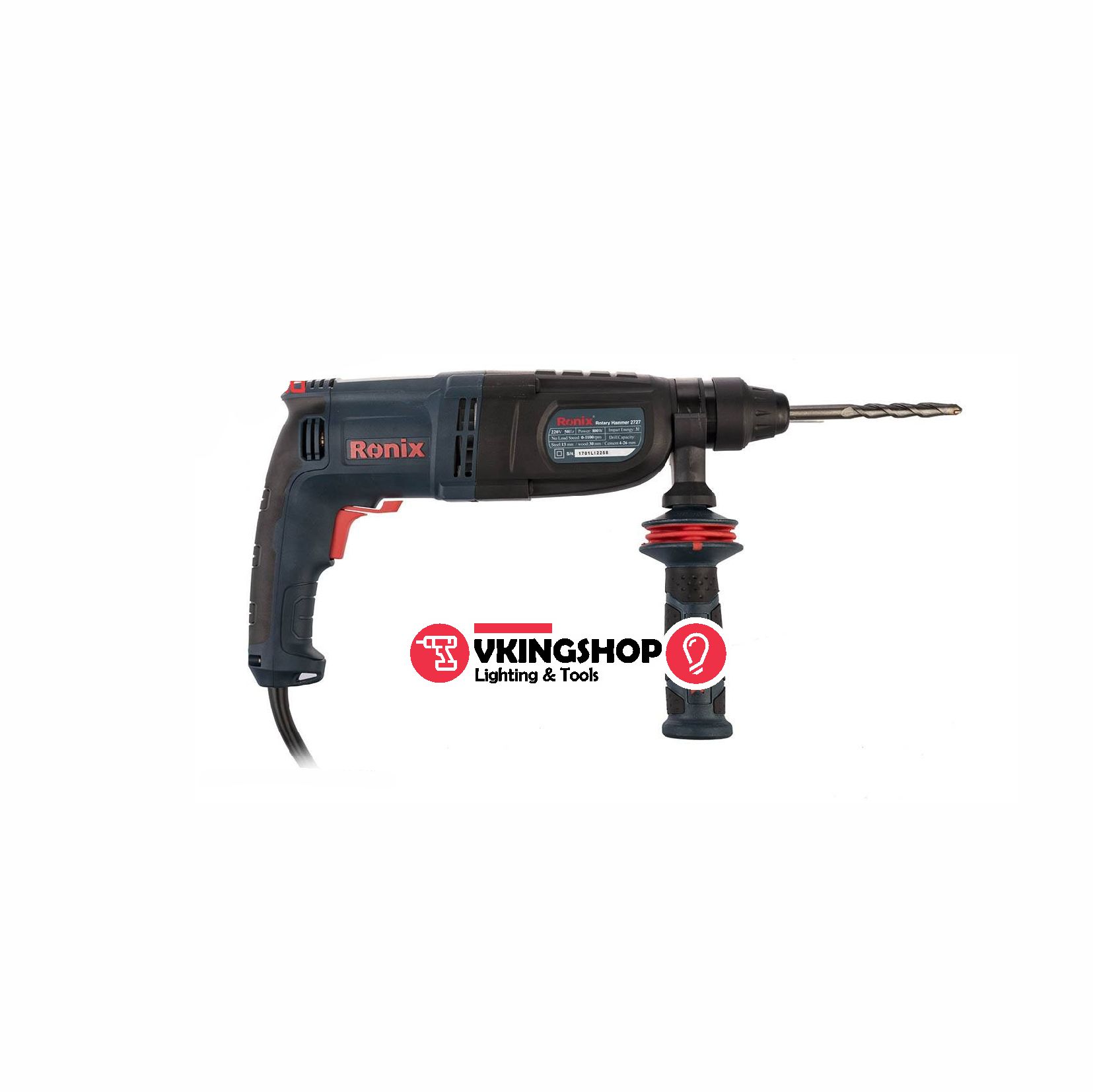 بتن کن رونیکس مدل 2727 دستگاهی است که با ایجاد ضربه های متناوب باعث ایجاد سوراخ در مصالح ساختمانی می شود. مته مورد استفاده در بتن کن ها به دو دسته چهارشیار و پنج شیار تقسیم می شود. بتن کن رونیکس مدل 2727 مجهز به یک موتور پرقدرت متشکل از آرمیچر و بالشتک صنعتی بوده که با توانی معادل 800 وات کار می کند و قادر است مته را با سرعت 1100 دور در دقیقه به حرکت در آورد. بتن کن رونیکس مدل 2727 یک بتن کن سه حالته با قابلیت عملکردسوراخ کاری، سوراخ کاری چکشی و تخریب می باشد. دسته جانبی که بر روی این دستگاهتعبیه شده قابلیت گردش 360 درجه را دارد تا کاربر بتواند در جهت های مختلف با آن کار کند. در ساخت بتن کن رونیکس مدل 2727 ازسیلندر، پیستون و ضربه زن مقاوم در برابر خوردگی و سایش جهت بالا رفتن عمر دستگاه استفاده شده است.با استفاده از بتن کن مدل 2727 رونیکس می توانید سوراخی به قطر 13 میلیمتر در فلزات و 26 میلیمتر در بتن و مصالح ساختمانی ایجاد کنید.