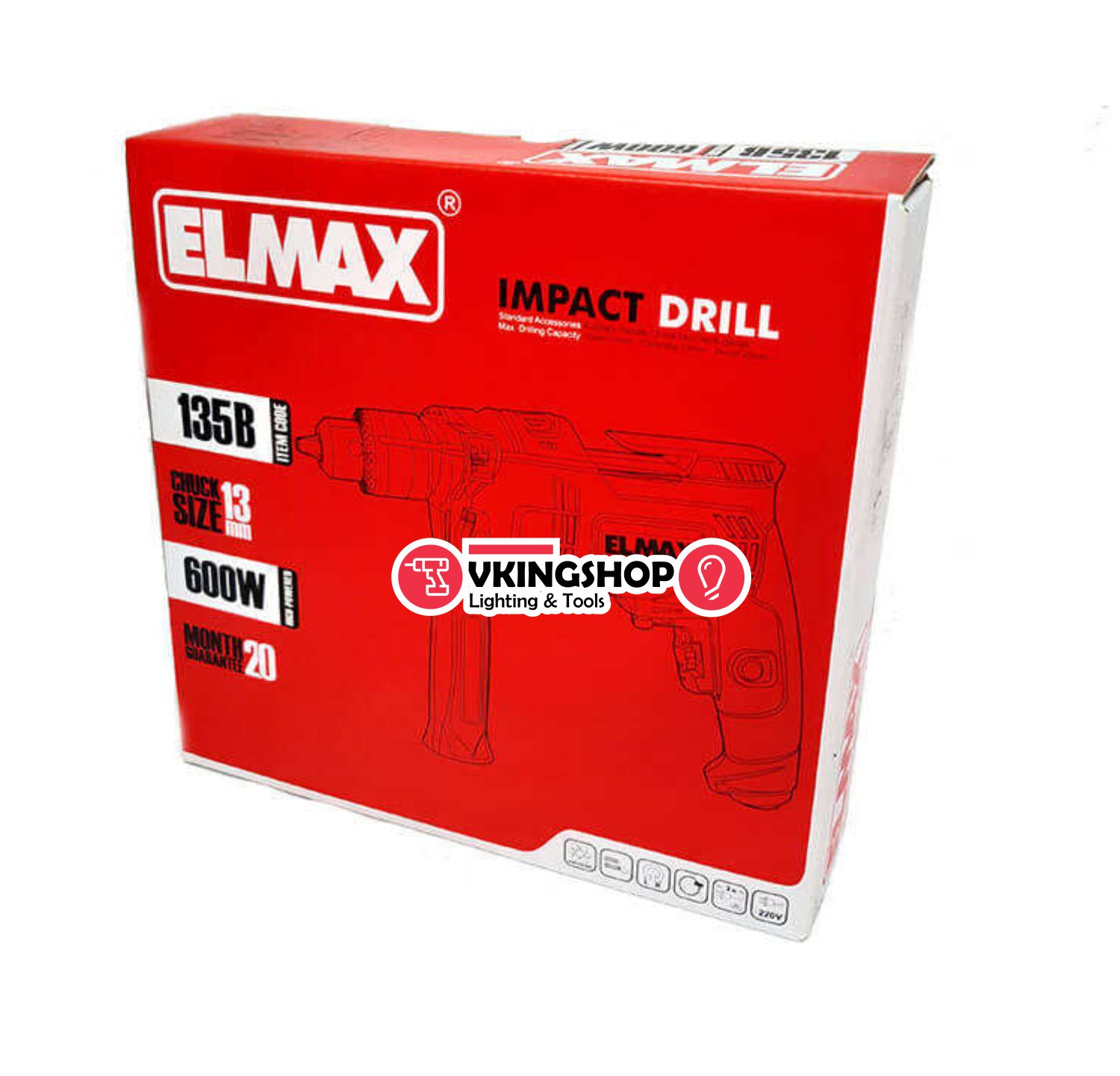 دریل چکشی فوق یکی از محصولات باکیفیت تولیدی شرکت المکس(برند ژاپن) است و اسمبل درجه 1دارای فلنچ بلبرینگی با سوییچ گازی سوییچ قفل کن دار و دارای روکش ضد تعریق و پوسته مقاوم در برابر ضربه و این محصول را به قابلیت کنترل سرعت مجهز کرده است.این دستگاه همانگونه که از نامش مشخص است میتواند در کنار چرخش مته، ضربههایی را به سطح وارد آورد. این ویژگی در سوراخکاری سطوح گچی و سیمانی و بتونی بسیار مفید است. از دیگر ویژگیهای این دستگاه میتوان به چرخش ساعتگرد و پادساعتگرد آن اشاره کرد. شرکت المکس برای این دستگاه یک سهنظام آچارخور 13 میلیمتری در نظر گرفته است. حداکثر قطر سوراخکاری این دستگاه در چوب، فلز و مصالح بهترتیب برابر 40، 13 و 20 میلیمتر است. این دریل چکشی توانی برابر 900 وات سوپر قوی دارد و وزن آن سبک است.